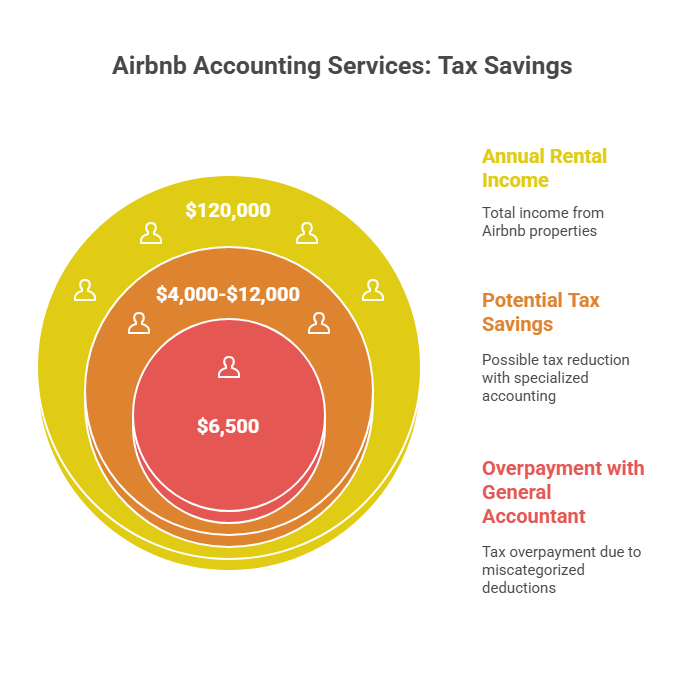 You manage three Airbnb properties generating $120,000 annually. Tax season arrives with transaction reports, receipts, and platform statements everywhere. Your general accountant miscategorizes $8,000 in deductions and fails to track occupancy taxes. Total overpayment: $6,500.