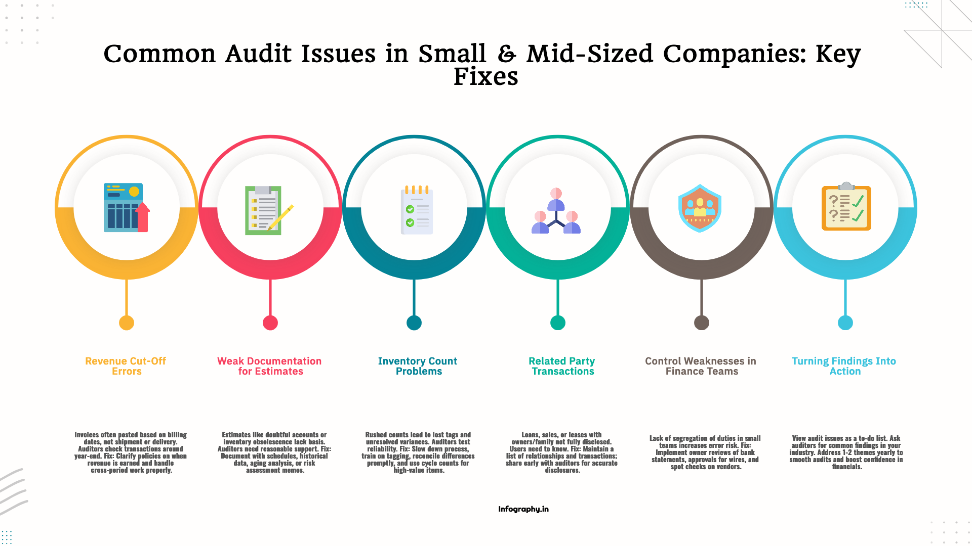 The most useful way to approach common audit issues is to view them as a to do list for strengthening your financial processes. Ask your auditors which findings they see most often in businesses like yours, and which fixes would have the biggest impact.