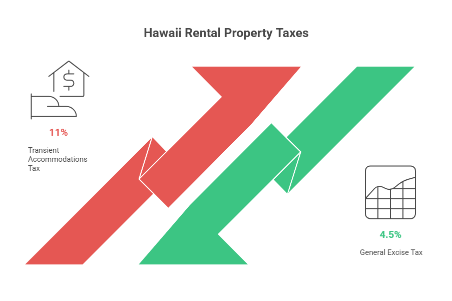 The Transient Accommodations Tax adds another layer. Currently 10.25% statewide, TAT increases to 11% on January 1, 2026, with the extra 0.75% dedicated to an environmental fund. TAT applies to rentals under 180 consecutive days, capturing vacation rentals, Airbnb listings, and short-term property management income. Since 2019, TAT extends to "all required charges and fees," including cleaning fees that many owners mistakenly exclude.