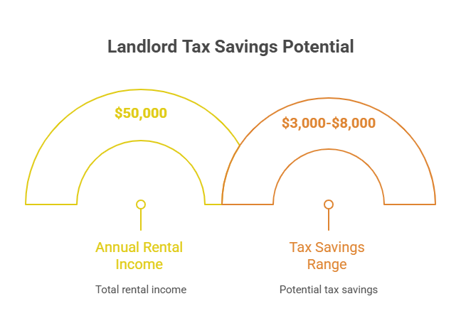 Landlords with $50,000 in annual rental income who properly claim all deductions save $3,000-$8,000 annually compared to incomplete tax filings. Landlords with $100,000+ in rental income using advanced strategies like cost segregation can save $12,000-$25,000 in the first year alone. Real estate professionals who unlock passive loss deductions save $15,000-$50,000 annually depending on income levels.