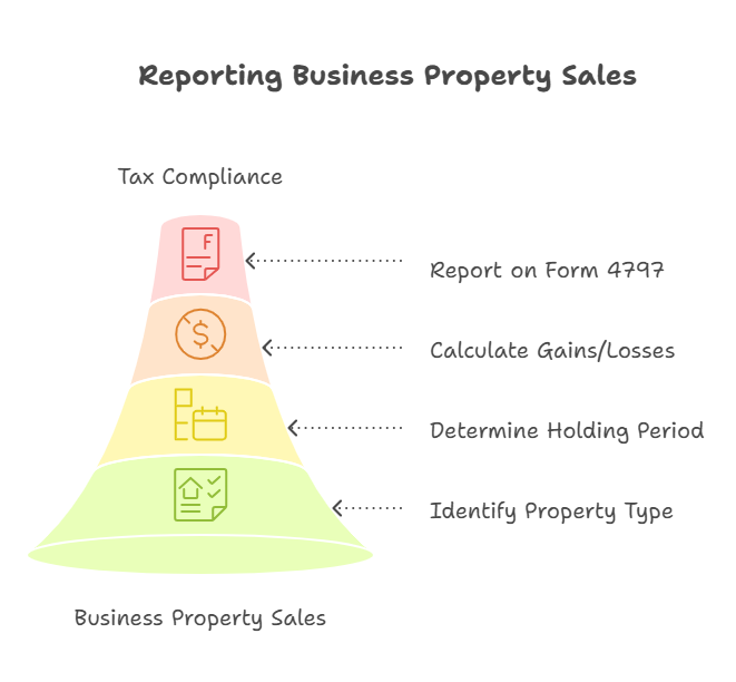 IRS Form 4797 reports the sale or exchange of business property used in your trade or business, including buildings, equipment, and vehicles. The form calculates depreciation recapture (taxed as ordinary income) and determines whether remaining gains qualify as capital gains or ordinary income based on property type and holding period.