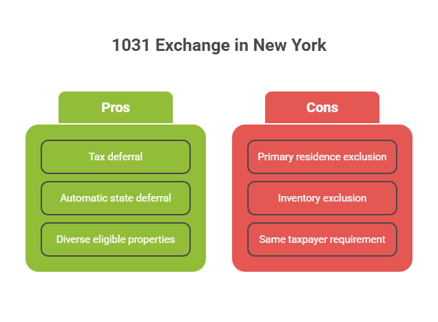 New York follows Internal Revenue Code Section 1031, allowing investors to defer capital gains taxes by exchanging investment or business-use properties for like-kind replacements. The state doesn't add requirements beyond federal law, when you defer federal capital gains, New York automatically defers state income tax because it taxes income reported federally.