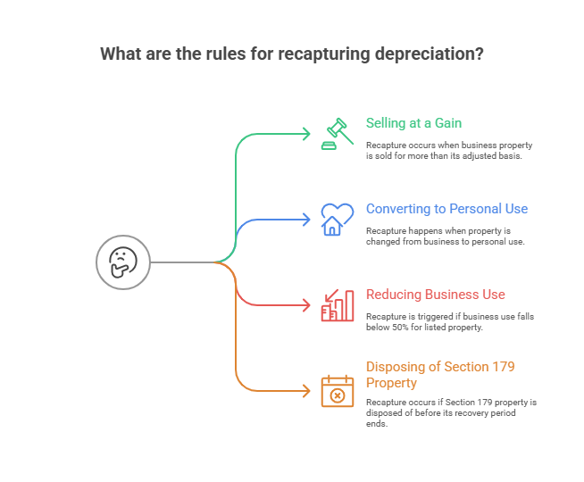 Depreciation recapture treats your gain as ordinary income up to the amount of depreciation you previously deducted. This prevents you from converting ordinary deductions into lower-taxed capital gains.