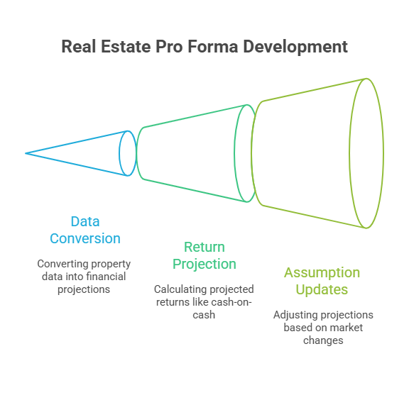 The term "pro forma" derives from Latin meaning "as a matter of form." In practice, it's the document that converts property characteristics, unit count, square footage, market rent, expense ratios, into projected returns like cash-on-cash and internal rate of return.