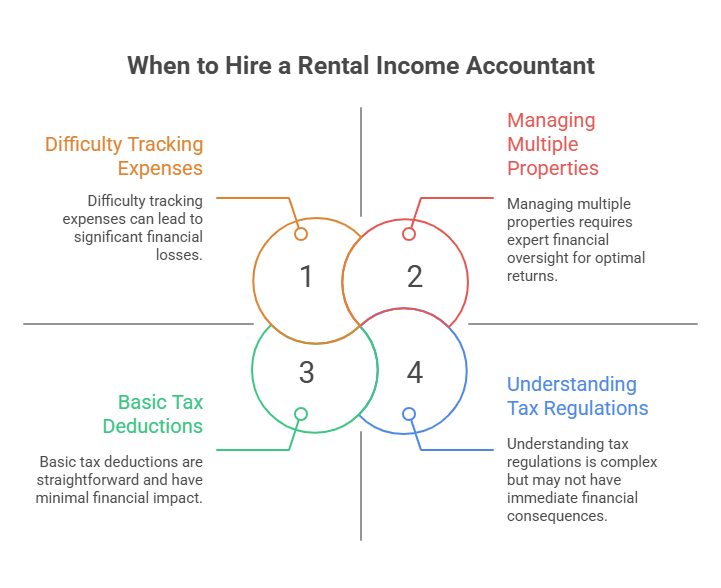 Even one rental creates complex tax situations. If your property generates $30,000+ annual income, an accountant typically saves $3,000-6,000 in taxes, far exceeding the $500-800 cost. The depreciation calculation alone is worth professional expertise.
