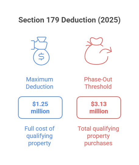 Section 179 of the Internal Revenue Code allows businesses to deduct the full cost of qualifying property in the year it's placed in service, rather than depreciating it over multiple years. For 2025, the maximum deduction is $1.25 million, with a phase-out beginning when total qualifying property purchases exceed $3.13 million.