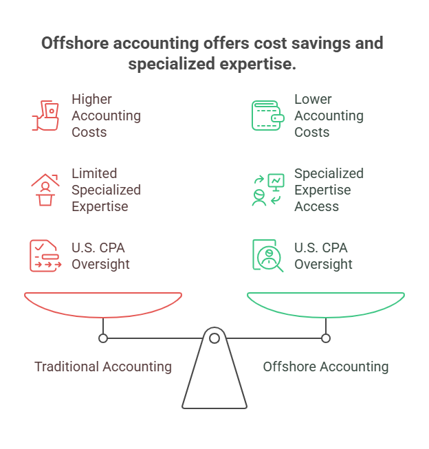 Consider hybrid approaches mixing different service levels. Offshore providers handle routine bookkeeping and compliance at reduced costs while boutique U.S. CPAs provide strategic planning for acquisitions and tax structuring. This combination delivers operational efficiency without sacrificing strategic expertise on critical decisions.