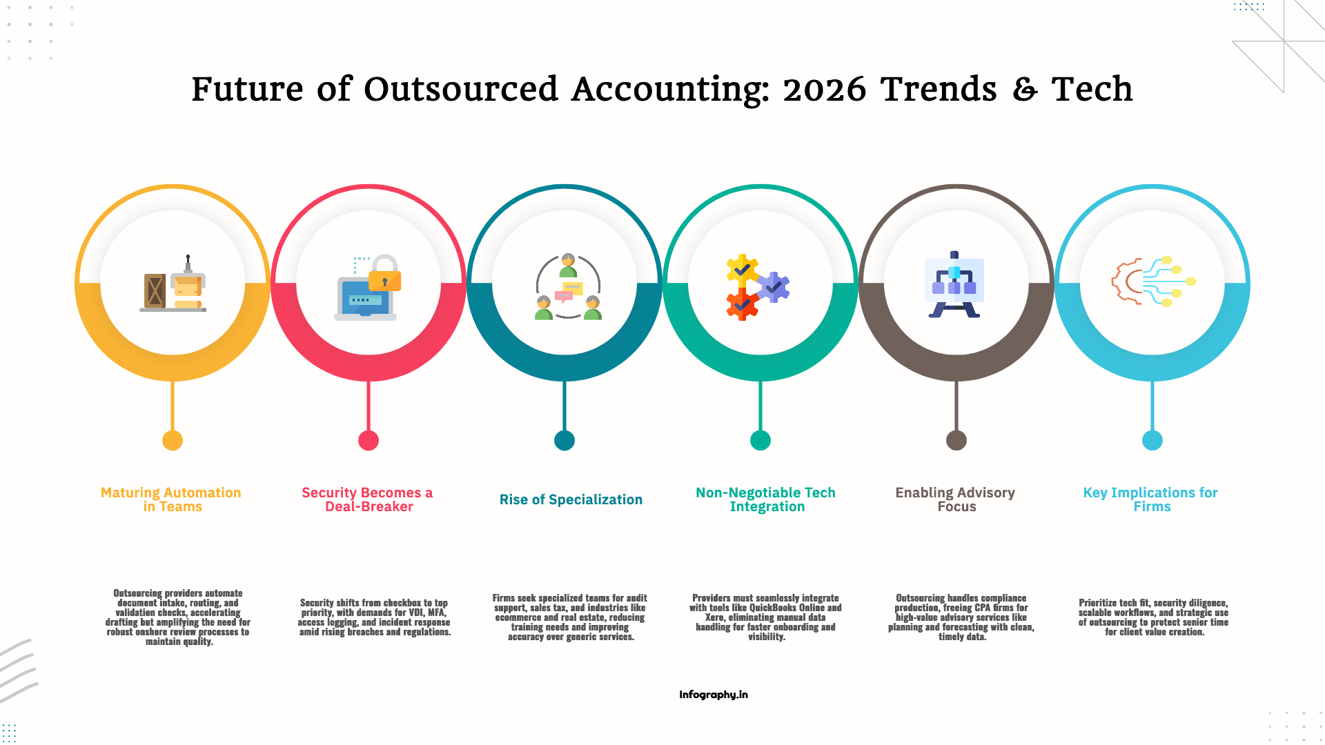 2026 trends in outsourced accounting that affect CPA firms: tighter security, more automation, more specialization, and better integration with client systems.